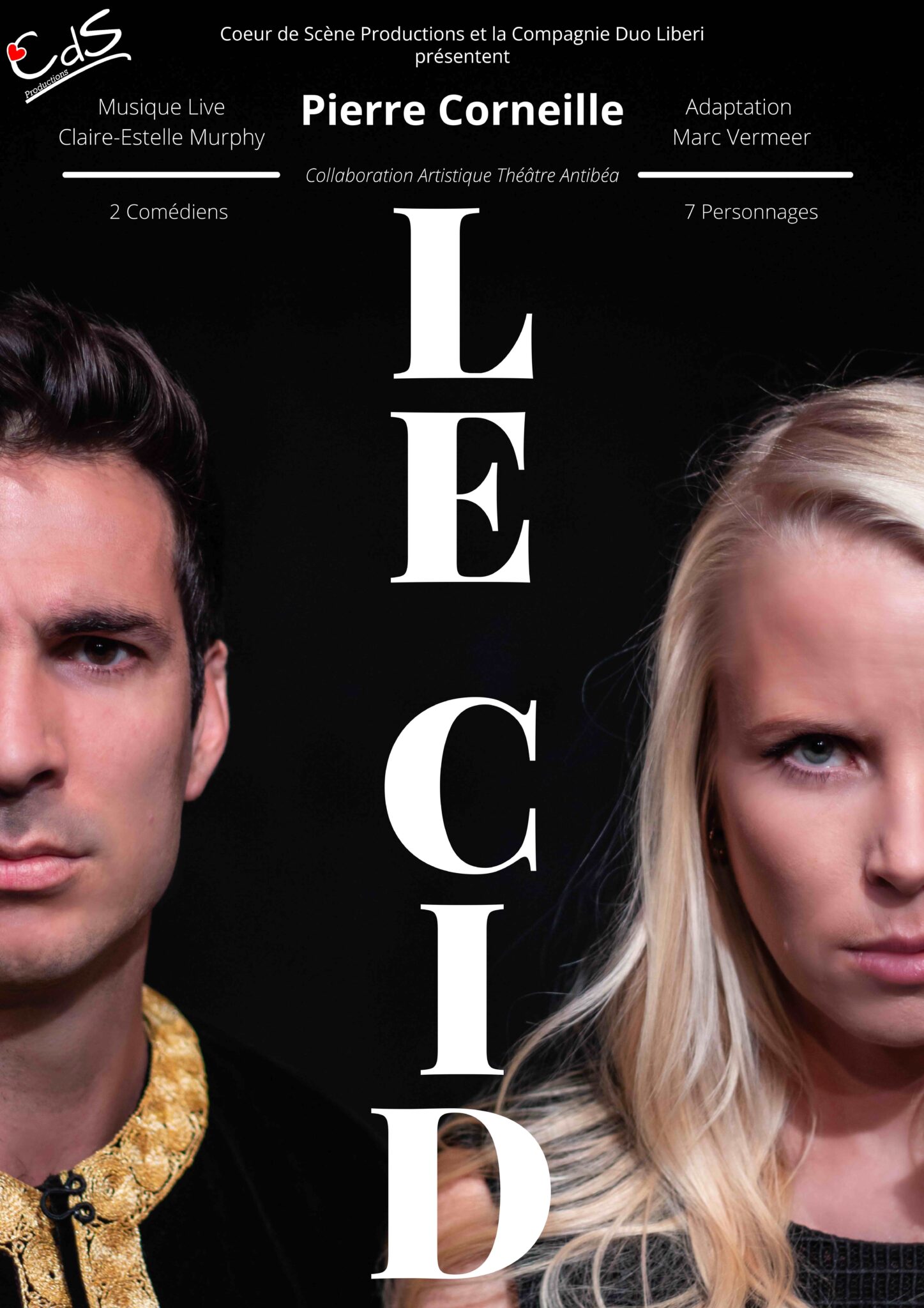 Deux comédiens interprètent tous les personnages de cette œuvre magistrale qu’est Le Cid, créant un univers dynamique, tragique et parfois comique, et musical avec une comédienne naviguant du texte au piano, jusqu’à la flûte traversière.